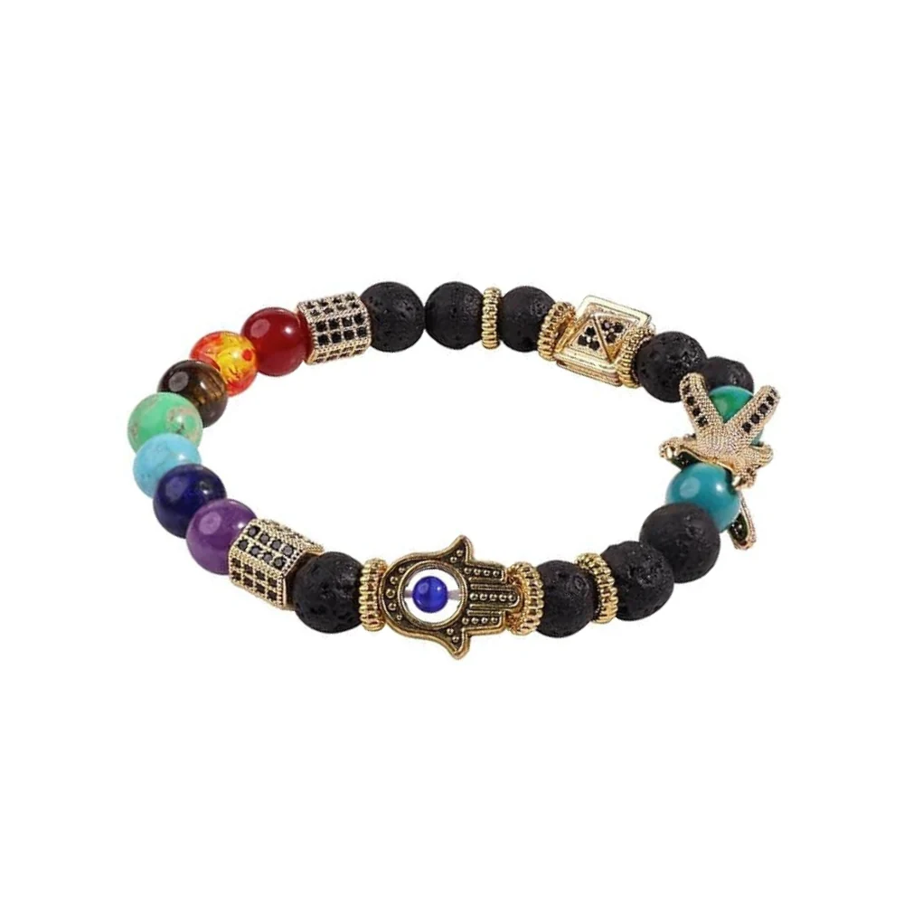 🌈 Lava Stone Shree Pyramid Chakra Yantra Bracelet
