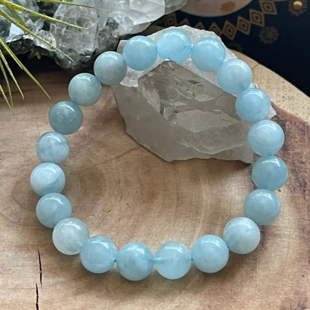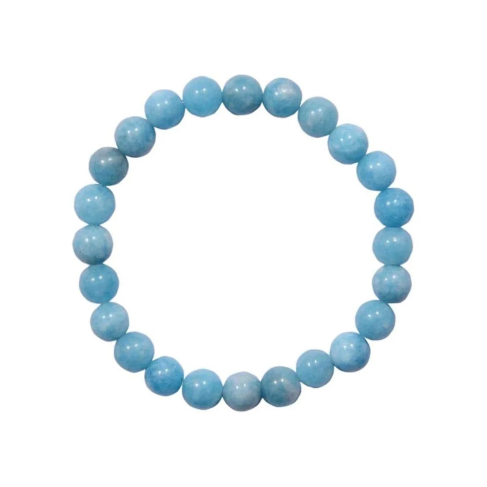 This premium bracelet is made from 100% Natural Aquamarine, a powerful healing stone known for its cool, ocean-like energy. Aquamarine is the stone of peace, clarity, courage, communication, and emotional cleansing.