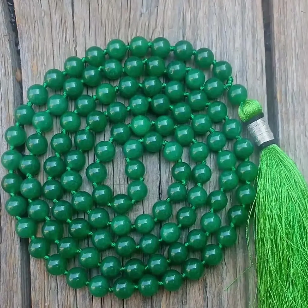💚 Natural Green Jade Mala – Stone of Luck, Harmony & Prosperity