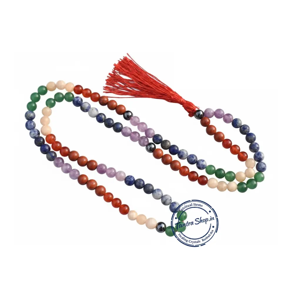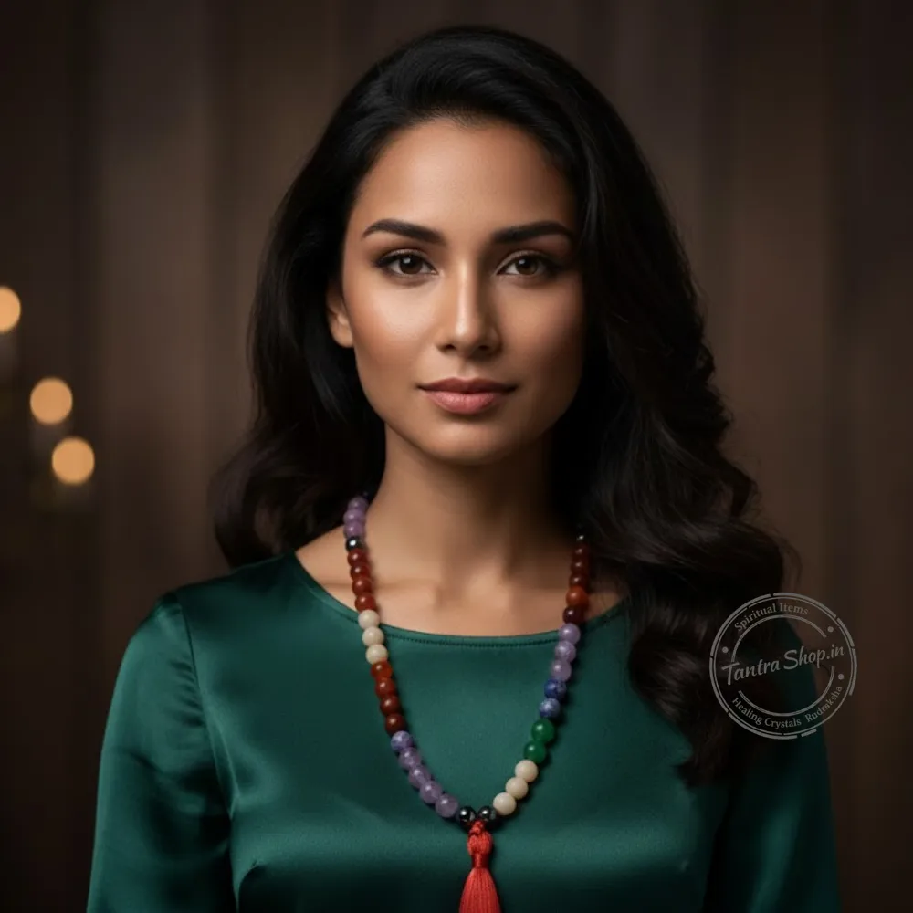 माला शरीर की seven chakras के energy flow को balance करने में सहायक, मानसिक और physical focus के लिए उपयोगी।