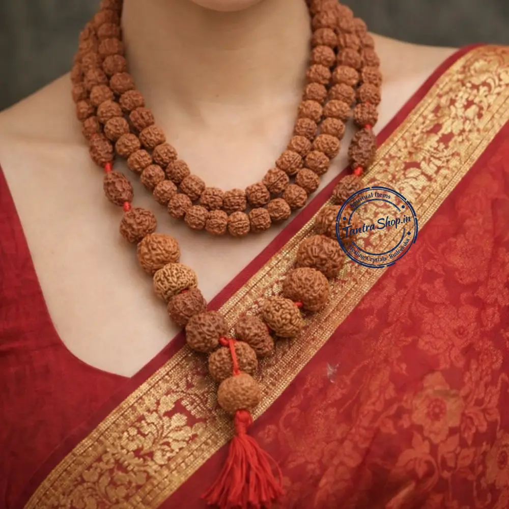 This Siddha Mala is carefully assembled using natural, well-formed Indonesian beads, known for their lighter weight, deeper lines (mukhis), and superior comfort for daily wear, making it suitable for long-term spiritual practice, japa, meditation, and lifestyle use. Each bead is traditionally cleansed, sanctified, and energized through mantra-based rituals to awaken its subtle vibrational potential, a process commonly referred to as Siddhi or Pran-Pratistha in spiritual traditions, allowing the mala to be used immediately with faith and intention.