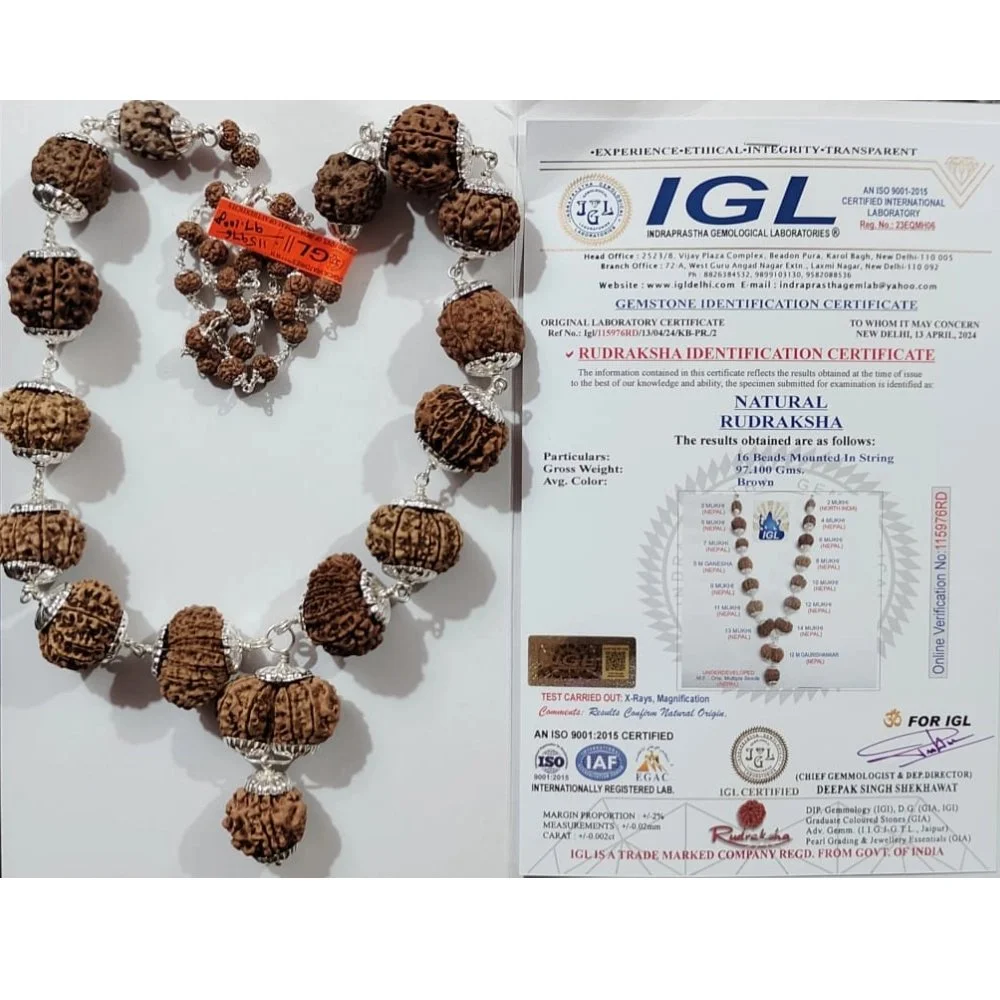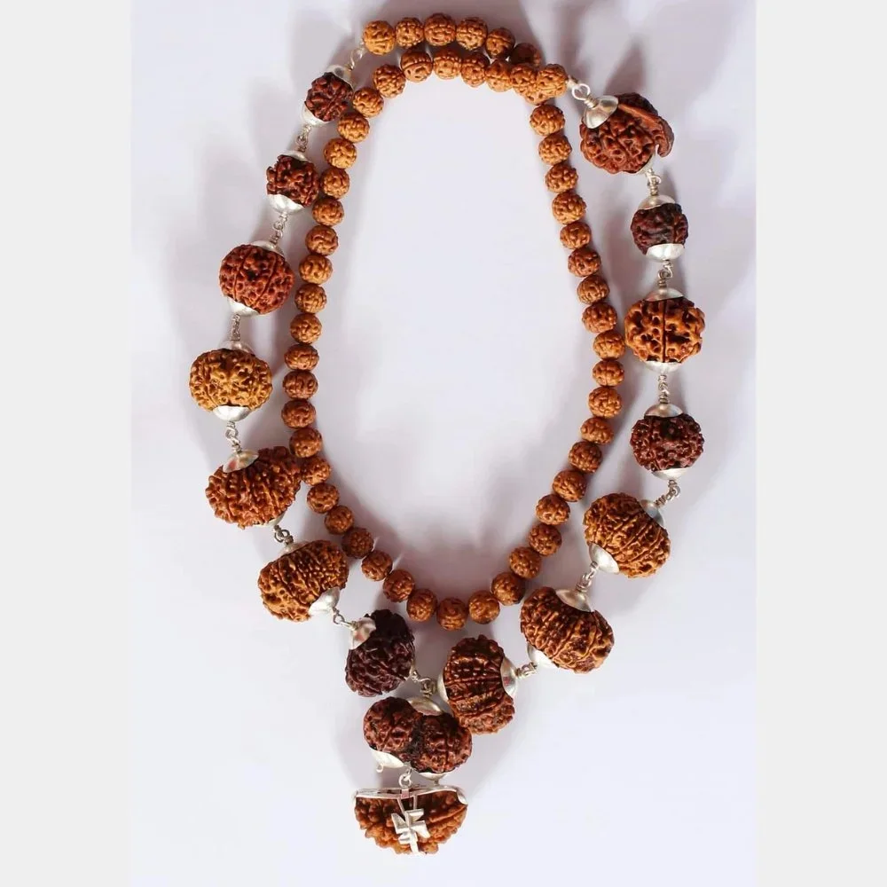 The Siddha Rudraksha Mala is the most powerful and complete combination of all 1 to 14 Mukhi Nepali Rudraksha, along with Ganesh Rudraksha (symbol of success & obstacle removal) and Gauri Shankar Rudraksha (symbol of divine union & harmony).