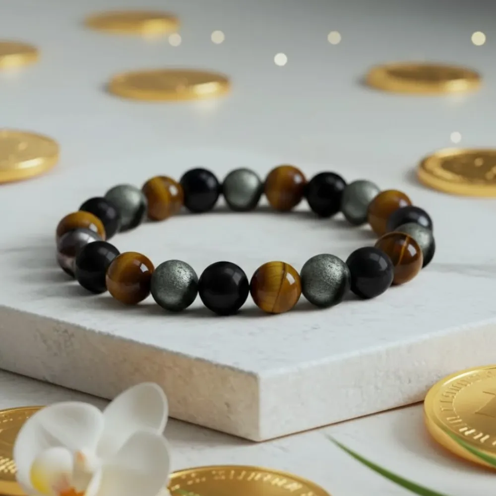 Triple Protection Bracelet आमतौर पर तीन शक्तिशाली सुरक्षा रत्नों से निर्मित होता है: